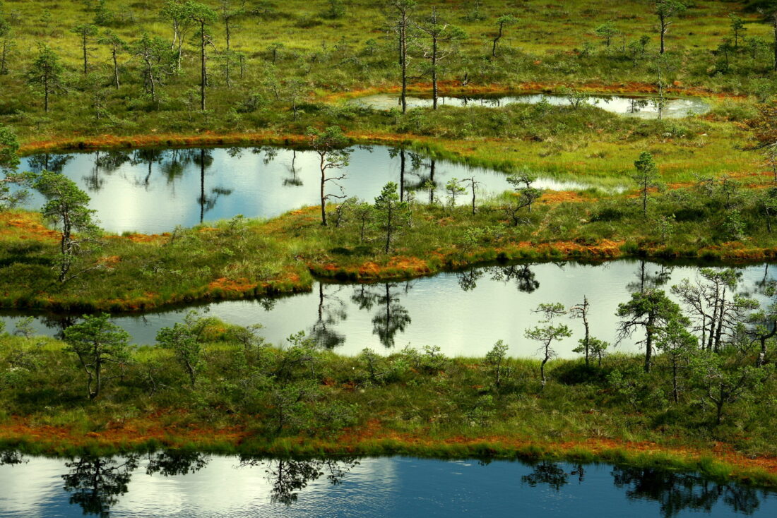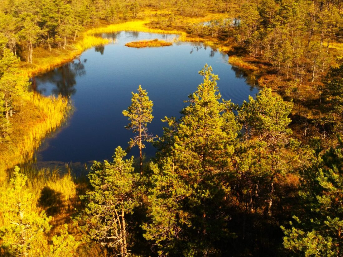 A bog is one of the most distinctive and calming landscapes in Estonia – vast open wetlands dotted with small bog pools, sparse pine trees, and wooden boardwalks leading you deep into the silence of nature.